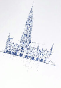 Münchner Rathaus, Tusche, 2023