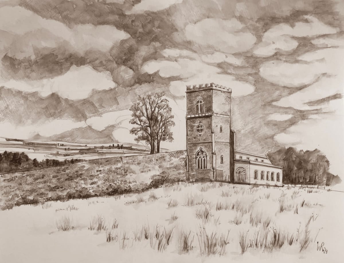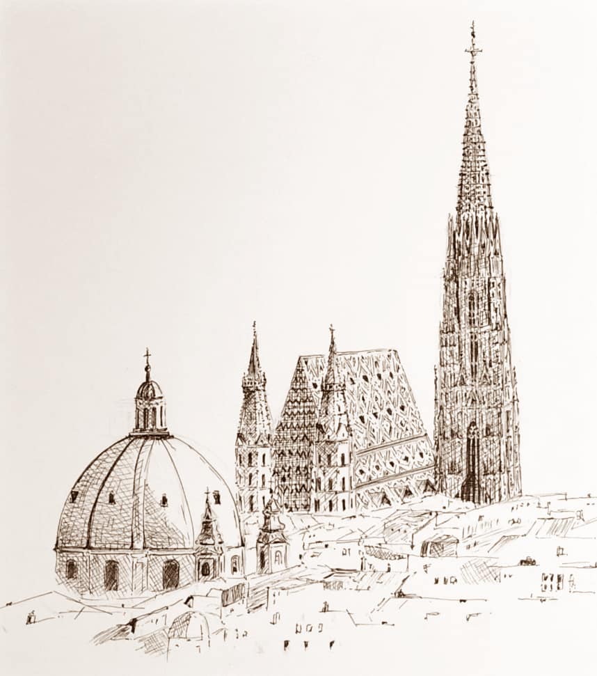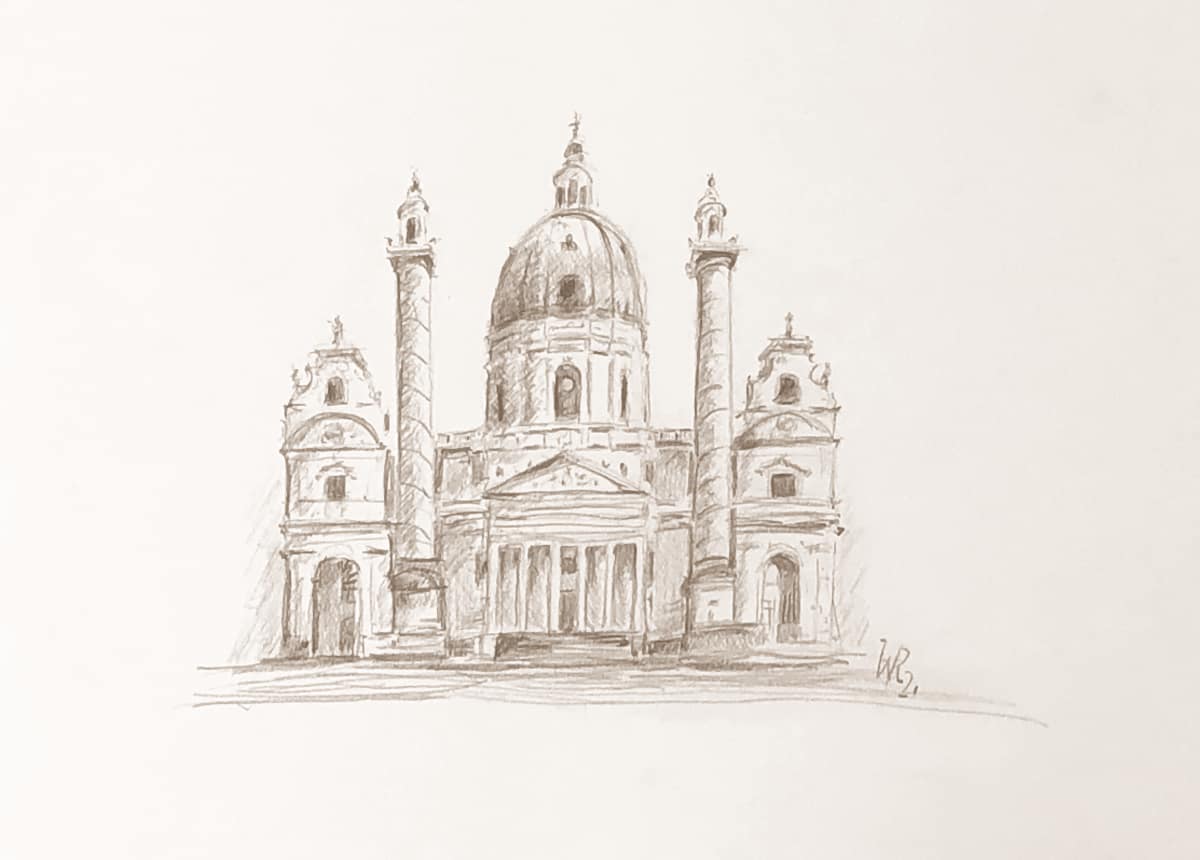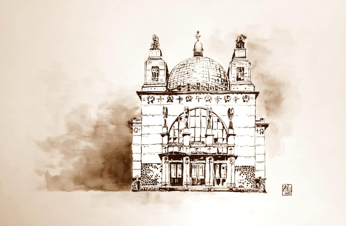 Otto Wagner Kirche am Steinfhof, Tusche, 2022