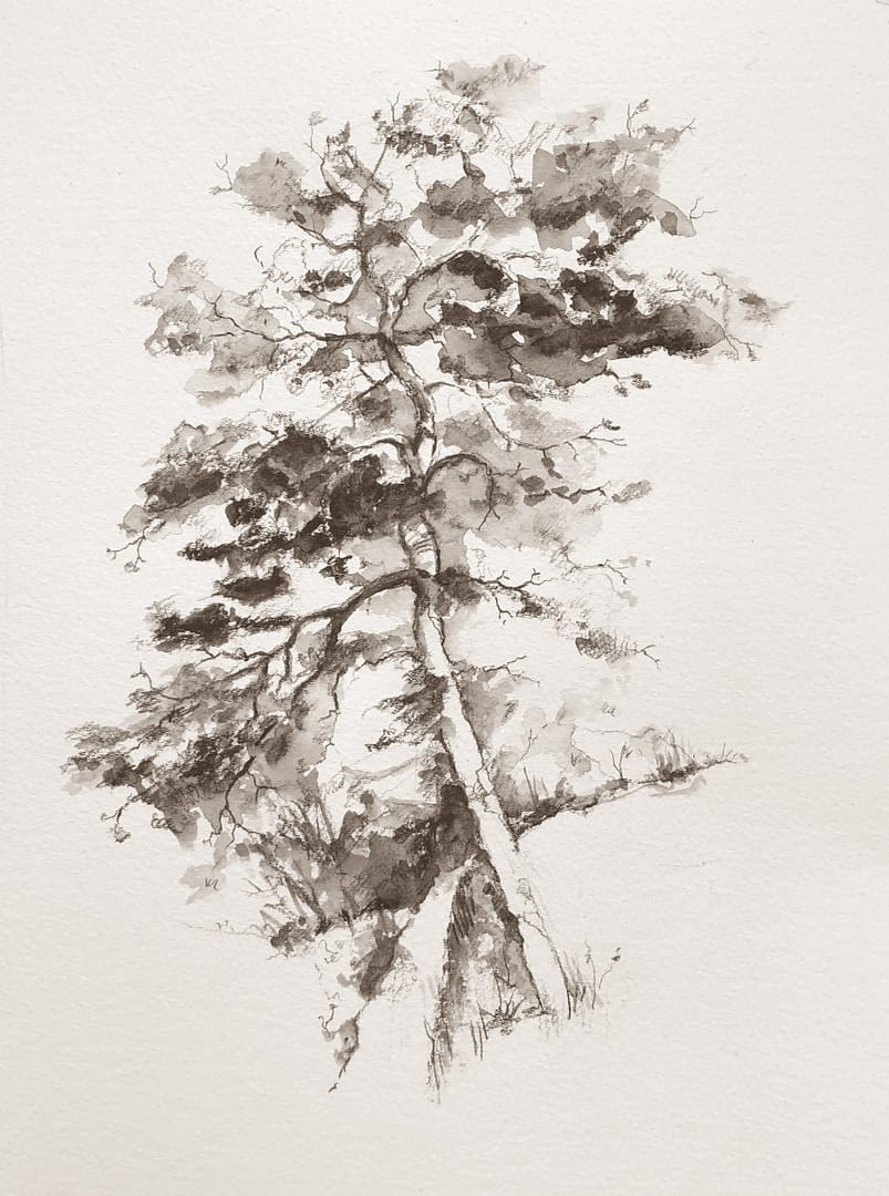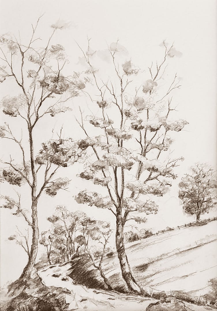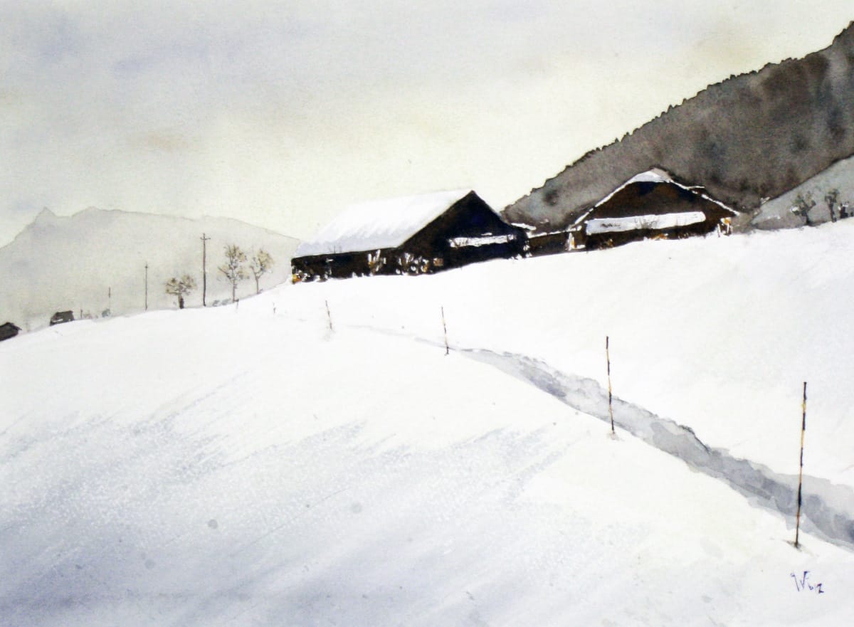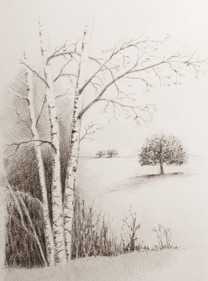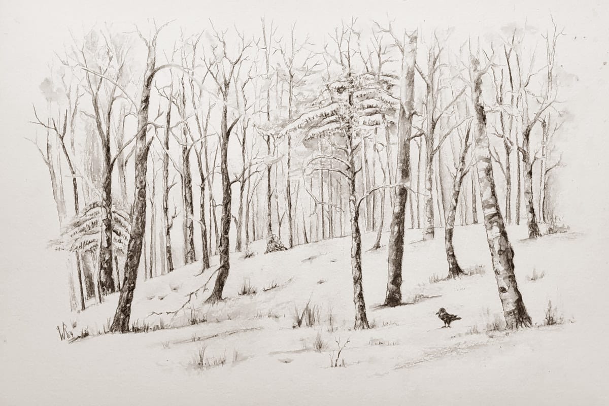 Winterlandschaft, wasserlöslicher Graphitstift, 2024