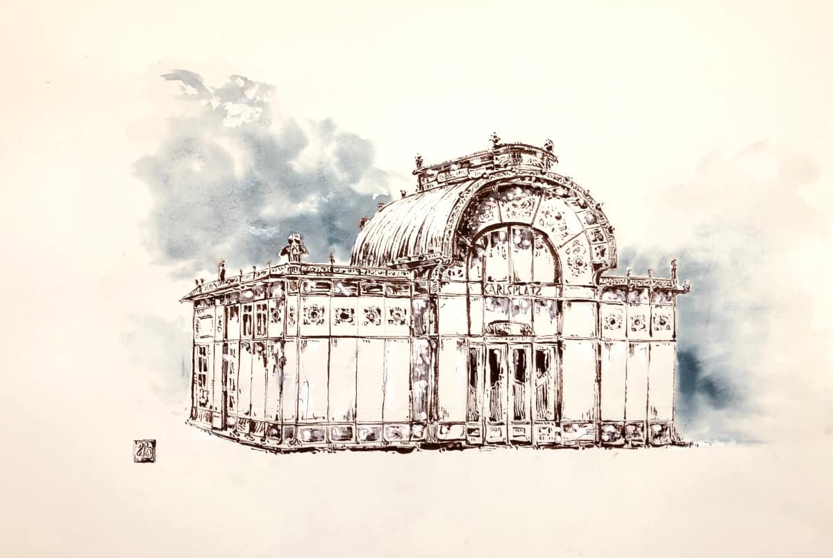 Otto Wagner Pavillon Karlsplatz, Tusche, 2022
