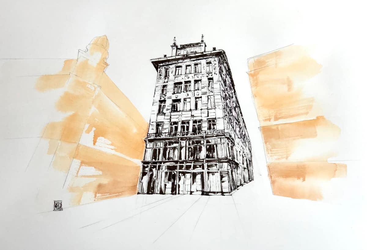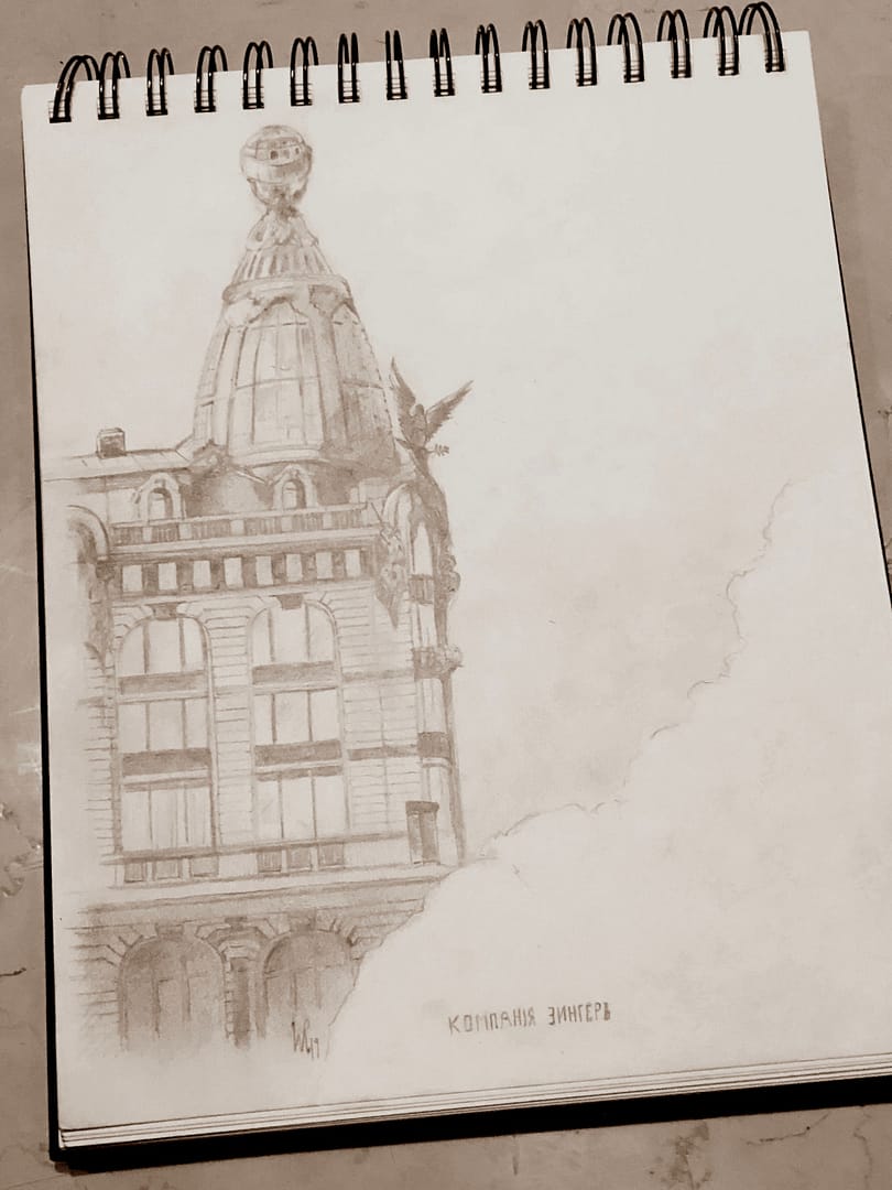 Singer-Haus/St. Petersburg, Bleistift, 2019