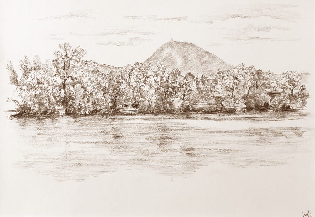 Am Wasser, wasserlöslicher Graphitstift, 2024