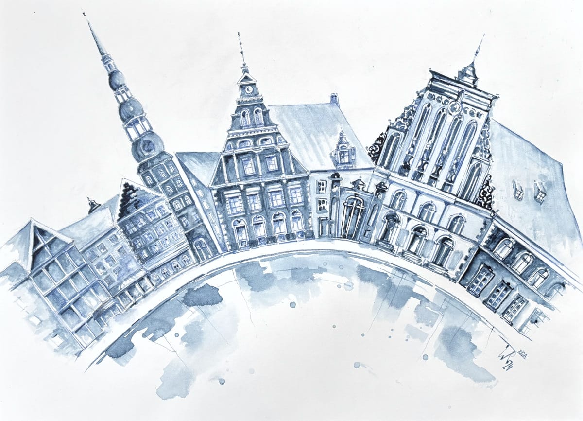 Lipaja/Lettland, Aquarell monochrom, 2017
